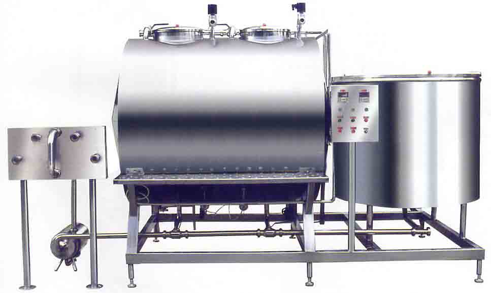 产品说明:本清洗机主要由酸碱液贮槽、清水槽、机架、清洗液送出分配器及离心泵等组成。CIP清洗装置作为不分解生产设备,又可用简单操作方法安全自动的清洗系统,几乎被引进到所有的乳制品、食品、饮料及制药等工厂使用。CIP清洗装置不仅能清洗机器设备,而且还能控制微生物繁殖。