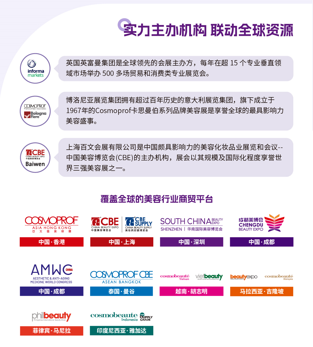 本届展会涵盖化妆品及专业美容,美妆供应链范畴,预计吸引逾20,000名专业观众莅临共拓商机。
