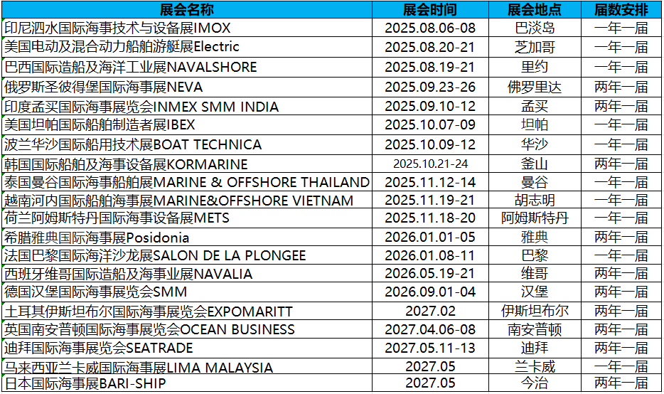 德国海事展SMM是全球迄今为止规模z大、影响z深的海事行业专业展览交易会,聚集了国际上所有业内知名企业。 汉堡国际海事展览会由德国汉堡会展公司主办,德国造船及海洋技术协会、德国机械协会、德国电子工业协会等协办,每两年举办一届。该展览会是目前世界造船领域规模z大、档次z高、影响力z强的专业性国际贸易展览会。90%的展商认为本展会的观众质量远高于其他同类展会,是全球参展效果z好、观众z专业、产业链z齐全的海事展, 是展商和观众的选展会。 全球排名靠前的展商几乎全部列席参展。 经过多年的发展,该展会与希腊波塞冬国际海事展和挪威国际海事展并称为世界三大海事展览会,而德国海事展无论在规模、国际化程度,还是影响力方面都在全球海事领域首屈一指。2025