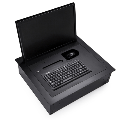 屏机联体,超薄一体式设计,外形精致美观; 内嵌15.6/17.3/19/21.5英寸高清显示屏,分辨率支持1920*1080; 防夹手设计,受阻立即反转,安全可靠; 采用精密链条式杠杆传动设计,开合无误差; 支持手动控制、翻转自如,使用灵活; 支持RS232/RS485串口控制,可接入中控系统集中管理; 支持标清、高清信号源输入,兼容性强; 带有高档ABS键盘鼠标套装,操控简便; 带有电脑开关一键联动控制按键; 带有信号切换选择按键; 带有显示屏参数调节按键; 采用氧化黑色铝拉丝工艺处理; 可选配触摸版本,选配无线遥控器控制。 输入电压 AC 220V 50~60HZ 工作功率 22W 运行温度 -20°~45° 工作湿度 5%~95% 可调角度 0°~110° 输入信号源 VGA & HDMI 显示电压 DC 12V |