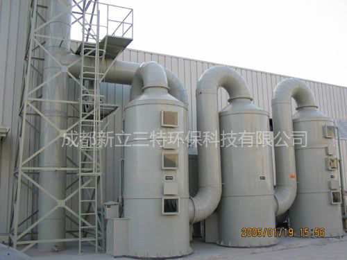 2、废气浓度值在50mg/m³以下可采用单层喷淋,50-100mg/m³采用双层喷淋,100mg/m³(包括)以上应采用三层喷淋,废气浓度过高的,需采用多塔串联组合。