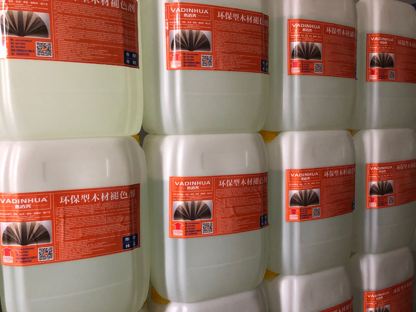 VADINHUA木洁美-环保型木材褪色剂是我公司技术部新开发的一款新型木材去红去黄消除色变保持原木本色的一款新型褪色产品,其具主要用于欧橡,柞木,红橡,水曲柳等树种的木地板,家具表板面皮的去红褪色消除色差处理 。本产品为单组份,操作简单,不需要技术工人,通过对木地板板材表面作简单喷涂或滚涂就能渗入木材纤维.对木材表面的深色素进行还原化学反应使其原深颜色还原至木材本色,经处理后的板材就可色泽一致,观感自然干净,纹理通透清晰,层次感强,不易返色稳定持久等一系列优点。广泛用于欧橡,柞木,红橡,水曲柳等树种的木地板表板,木质家具 木质工艺品,木门等去红去黄消除色变保持原木本色效果处理.