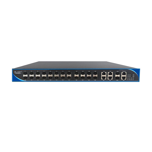 GL-E8616T-ATG 是冠联通信自行研制的盒式 OLT 交换设备,提供 16 个下行千兆 PON 口,4 个上行 GE 千兆光电