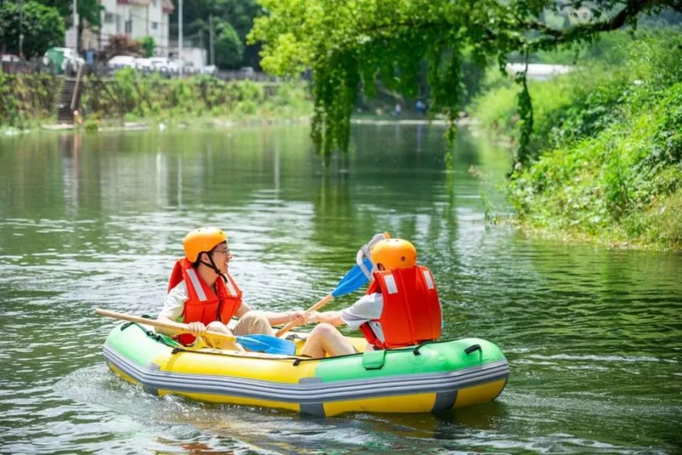 漂流河道全长2公里,落差达50米,为体验者带来约1-1.5小时的快乐航程。沿途既有水面开阔的缓流段,也有溪道曲折、水流湍急、跌宕起伏的刺激段,让孩子们在清凉的水中尽情欢笑。
