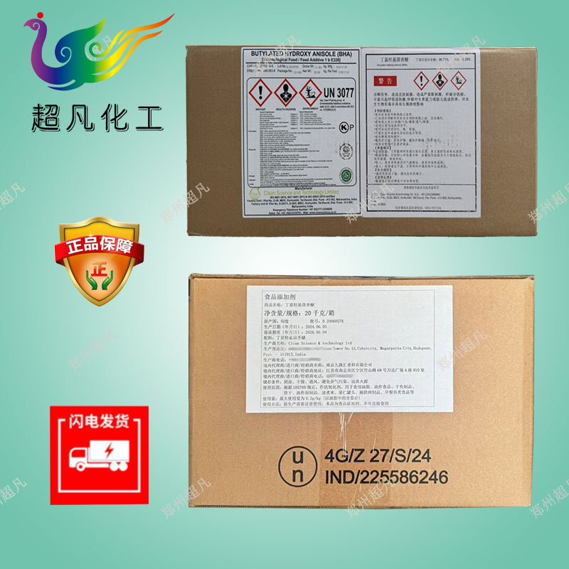 (产品包装)BHA内用铝箔袋包装,外用纸箱包装。净含量20kg。