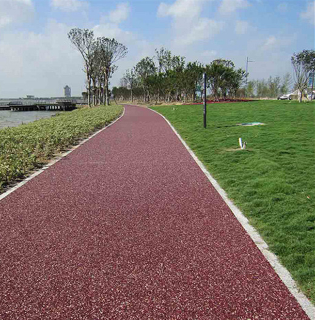 生态胶粘石透水地坪是采用改性聚酯胶和天然彩石搅拌均匀,铺装在混凝土或沥青路上的一种豪华型生态路面。睿龙生态透水路面铺装系统独特的孔隙结构,使得地下温度透入地面,从而降低整个城市地面的温度。生活中越来越多的建筑物剥夺了人们的舒适感,增加了热应力的影响范围,空气质量日趋恶化,各种有毒烟雾在热空气中极易传播,越来越多的有害烟雾导致越来越多的人更容易患皮肤癌的机率,透水性混凝土铺装系统的结构点使地面在吸热和储热功能方面接近于自然植被所覆盖的地面,较大程度上解决了人们的生存环境问题。