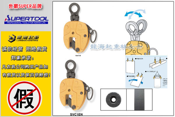 世霸钢板起重吊钳SVC-E竖吊钢板吊具,把手自由型,日本世霸SUPER TOOL品牌,现由烟台开发区龙海起重工具有限公司销售。