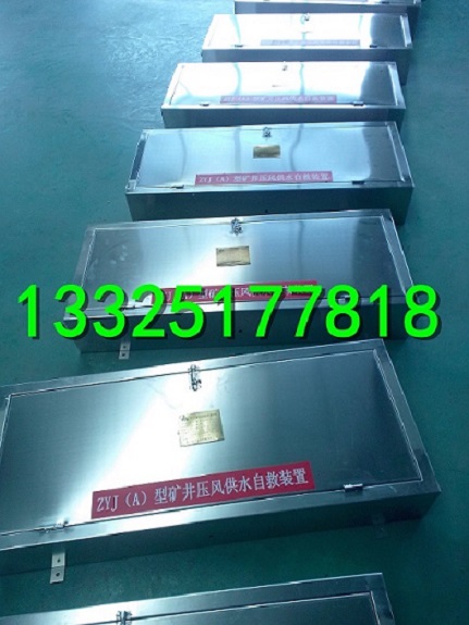 ZYJ(A)型矿井压风供水自救装置,此装置在压风自救装置的基础上增加了,进水管、净水过滤器、水型压力表、排水装置(多组)等。同样箱体、安装板、总进气管、总进水管采用不锈钢制造而成。一箱六组供水,六组供气(可根据要求设计组别)。