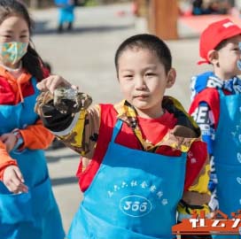 小朋友们从这些螃蟹中挑选一只,为接下来的赛螃蟹做准备。
