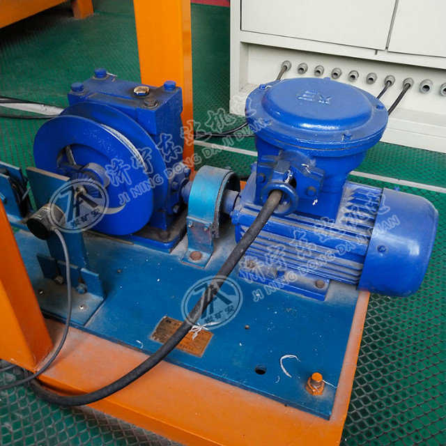 JF250ZD收放绞车(煤安证号:MCK110036),是跑车防护装置的配套部分,作为控制挡车栏拦网的开启和关闭装置使用。当矿车接近挡车栏时,收放绞车使挡车栏拦网提起;当矿车经过挡车栏后,收放绞车使挡车栏拦网关闭。如果发生跑车事故,挡车栏拦网处于常闭状态,可将矿车准确可靠地拦住。