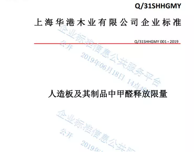 标准名称:Q/31SHHGMY001-2019《人造板甲醛释放限量》