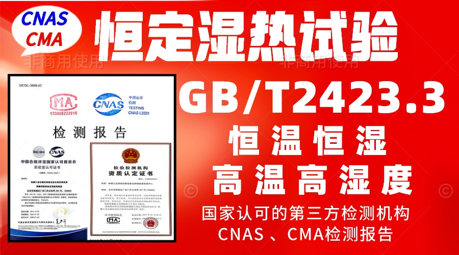 北京仪综所实验室具备GB/T2423.3恒定湿热试验能力,具备CNAS和CMA资质的第三方检测机构,接受客户委托,提供: