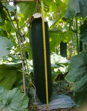 瓜长60-85公分,横径23-27公分,通常瓜重30-40公斤,皮黑绿色有光泽。