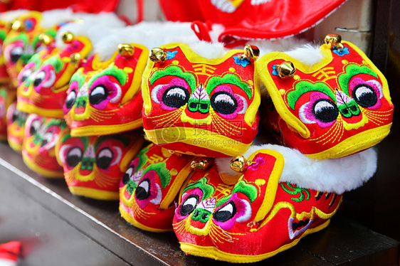 穿虎头鞋是中国民间育儿习俗,流行于全国各地。虎头鞋多用红/黄布制成,鞋尖镶一虎头,因虎是“百兽之王”,故鞋头中间绣一个“王”字。通常在小儿满周岁或生日时穿新做的虎头鞋,民间认为,这样可为小孩壮胆、避邪,也有祝愿小孩长命百岁之意。
