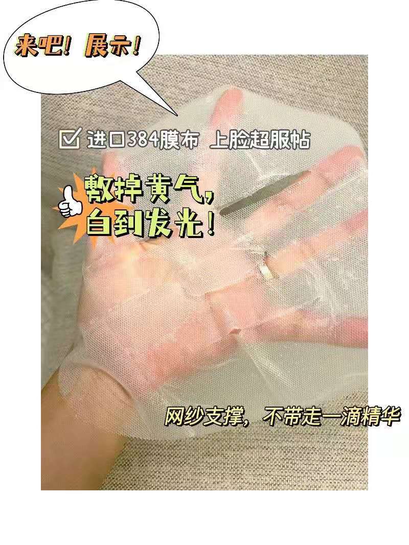 用料:采用天然蚕丝薄膜,比无纺布更具弹力和韧性,可以自由拉伸调整尺寸,无论小脸还是大脸,都能照顾到肌肤的各个角落,完美贴合肌肤轮廓。