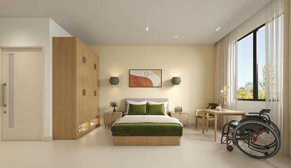 重庆养老院装修设计不仅要考虑到常用设施如门窗、家电等的易于操作性,同时要保证它们对老年人的安全性。同时,根据老年人的行为习惯以及身体特点,使老年人活动的空间具有很好的可达性,加强安全措施的运用,如卫生间、浴室扶手的设置,地面防滑的设置,急救按钮的设置等等。为提高安全性,主卫应尽可能靠近卧室从而减少距离。