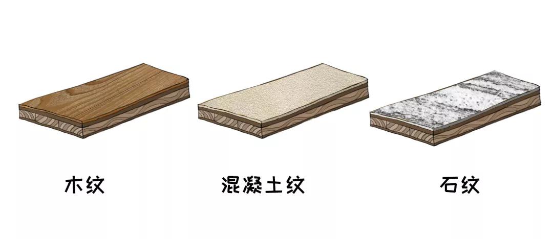 这种是在纸基上打印高清的纹路,能模仿出木纹、混凝土、石纹等效果。