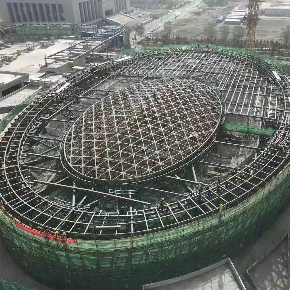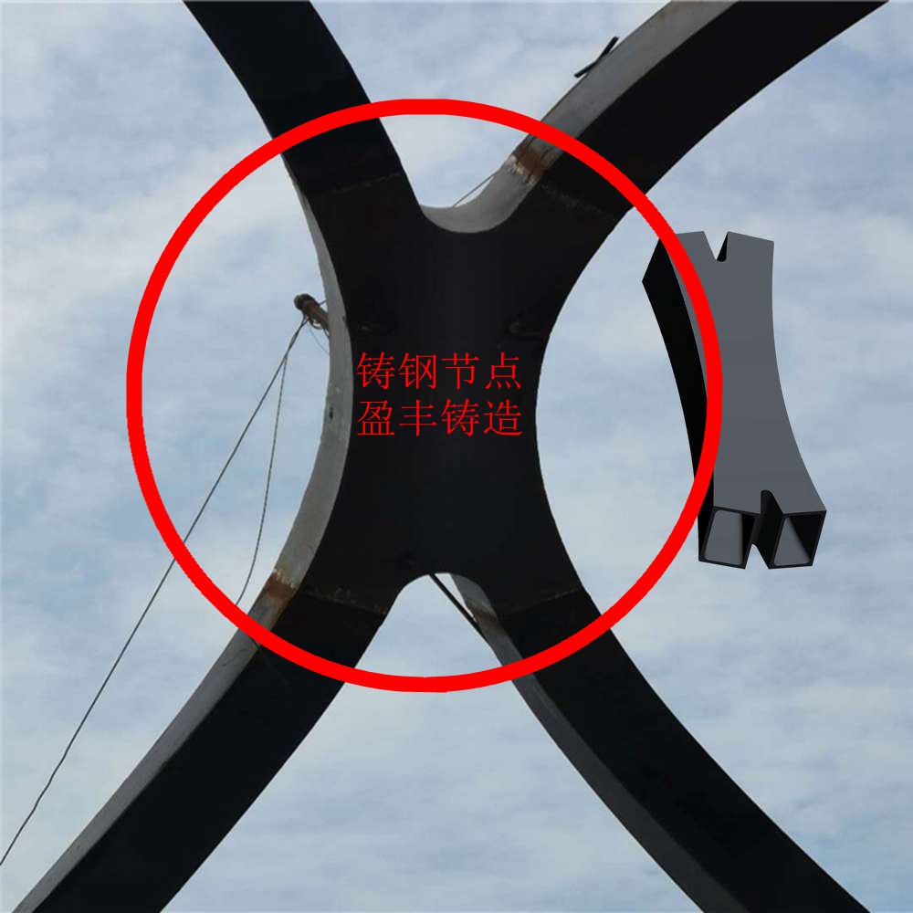 大跨度钢屋盖,由于结构不连续、大悬挑、曲面造型复杂且平面尺度超限使得钢屋盖空间受力异常复杂,其中柱分叉节点、柱顶多杆节点采用了铸钢节点型式。