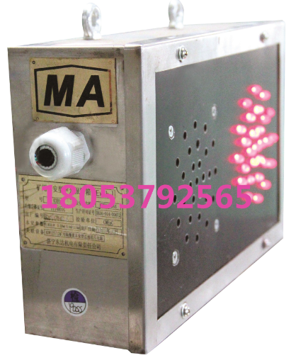 矿用本安型声光报警箱外壳上方有悬挂吊鼻,发光二极管为双色警示灯、双路输出,报警箱能发出红、绿两种颜色的光信号并伴有相应的警示语。