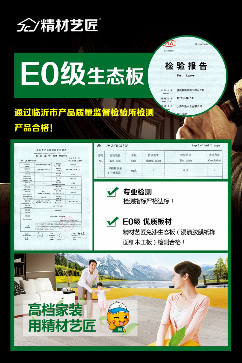 许多消费者都在纠结于挑选国产的板材仍是进口的板材,其实从板材的质量和环保等级上来看,国内的大型板材企业的产品并不比那些进口板材的质量差,比如我国板材十大品牌的精材艺匠板材的产品都有着严厉的审阅规范以及产品检验陈述,在环保等级规范上严厉符合国家环保等级要求,真实做到每一块精材艺匠的正品板材都打上环保的标签。