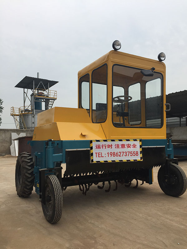 自走式翻抛机采取四轮行走设计,可前进、倒退、转弯,由一人操控驾驶。行驶中整车骑跨在予先堆置的长条形肥基上,由机架下挂装的旋转dao轴对肥基原料实施翻拌、蓬松、移堆,车过之后篡成新的条形垛堆。地面堆置发酵需将物料堆成长形条垛,由轮式翻抛机定时对物料实施搅拌、破碎,在好氧条件下进行有机物的分解。并且有破碎的功能,大大节省了时间和劳力,使有机肥厂生产效率和产品质量有显著提高,成本大大降低。