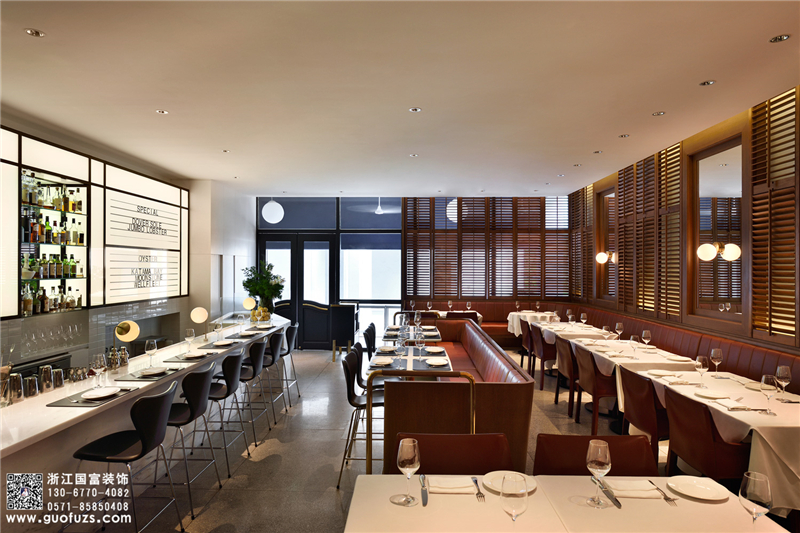 料理餐厅装修设计时地面应该选用地砖还是地板?料理店的地面很容易沾染油污或者被泼洒酒水。所以选择什么样的地板或地砖需要谨慎考虑。地面最好使用仿木纹地砖,美观、防滑、耐用。墙面使用墙布使得室内效果比较温馨,而且易于清理。