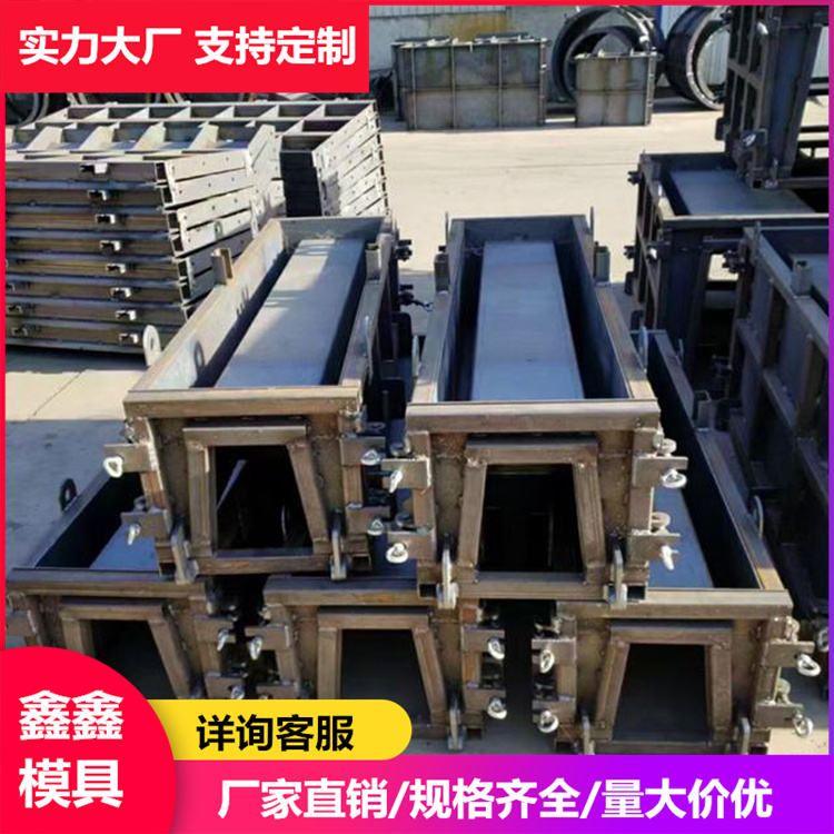 保定鑫鑫建材模具厂定制矩形槽模具。钢制U型槽模具要立足满足庞大的市场需求,提高满足度,提升自身管理和技术,新的产品研发很重要,不能创新的产品不是好产品,要在既保证模具产品质量又保证工作效率的前提,注重模具的实际应用情况,从技术上进行更好的更新,这也是U型槽模具的核心发展理念。U型农渠模具简介及使用方式往往代表了其模具性质,一般U型槽模具都是采用预制方式生产,整体现浇的话无法塑造U型的效果。在U型槽预制块使用.上,往往采用平口的方式,这样可以节省承插口的生产时间。