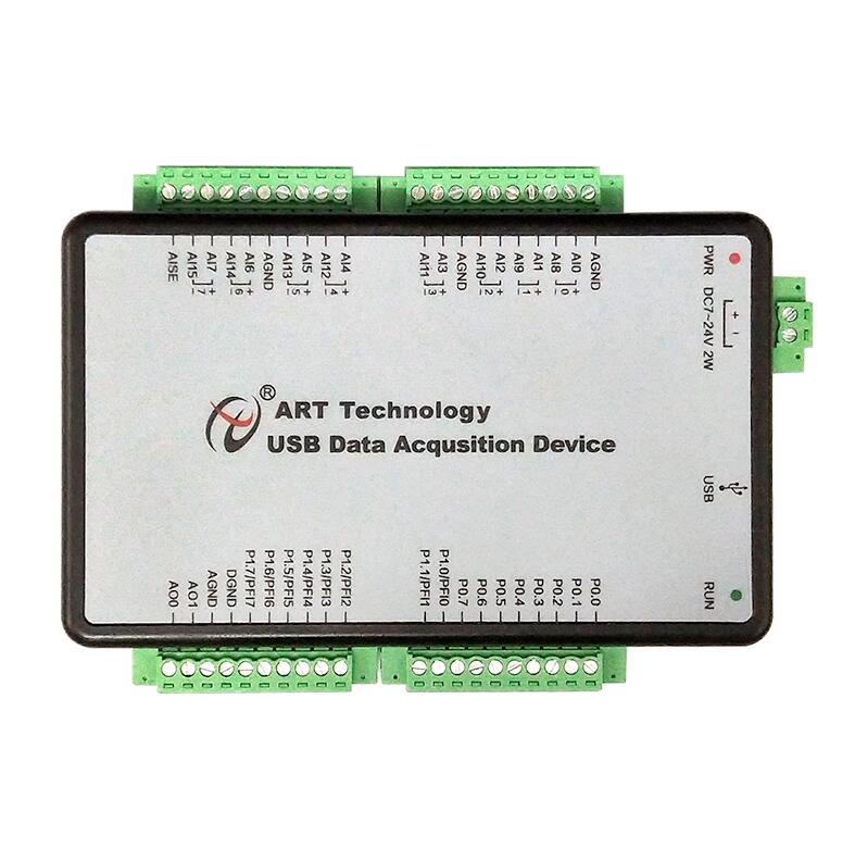 USB3136A多功能数据采集卡,与LabVIEW无缝连接,提供图形化API函数。500Ksps 12位16 RSE / NRSE通道或8通道DIFF模拟量输入,支持按需单点采样、有限点采样、连续采样;2通道模拟量同步输出;16路可编程I/O;2路多功能计数器。