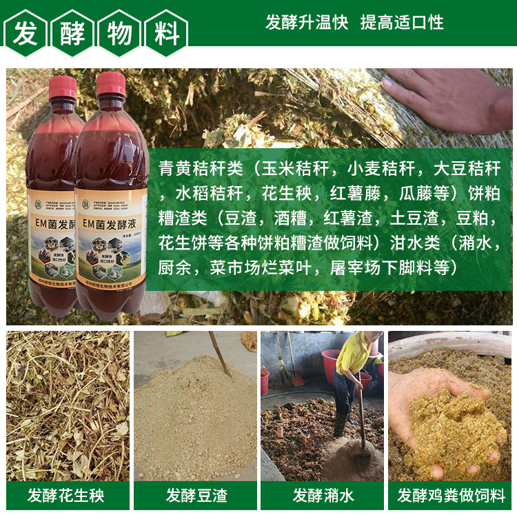 需要注意的事项: 1.发酵好的粗饲料不可以直接全部替代饲料,可以从百分之5由少到多的慢慢添加,家禽类(鸡、鸭、鹅等小型动物)可以添加到百分之30-50,家畜类(猪、牛、羊)做多添加到百分之50-80左右。 2.发酵后的粗饲料如果要长期保存,则要严格密封,并压实处理,尽量排除空气. |