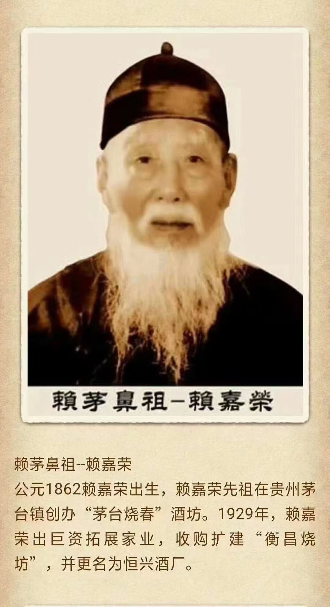赖嘉荣(1862-1933,贵州酱酒-始祖赖记,赖记酱酒首代)。