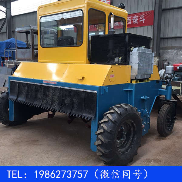 自走式翻抛机采取四轮行走设计,可前进、倒退、转弯,由一人操控驾驶。行驶中整车骑跨予先堆置长条形肥机上,由机器下挂装的旋转刀 ,对肥机原料实施翻拌、蓬松、移堆,车过之后形成新的条形堆垛,即可在开阔场地,也可在车间大棚实施作业。该机一大技术突破在于整合了物料发酵后期的破碎功能。