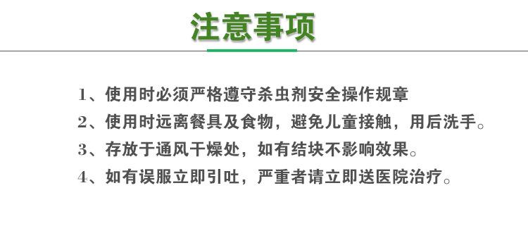 使用技巧: 1、取本品放置于托盘或纸盒中,自然吸引苍蝇进行杀灭。 或者药撒在盆里,盆放高处,既方便、还省事。鸡猪猫狗碰不到,方圆几米的苍蝇会自己来吃,蚊蝇天敌不会吸引十米以外的苍蝇,不用担心别人家的苍蝇来串门。苍蝇跟人的习性很像,早起饿得半死,逮什么吃什么,包括晚上黄昏那会也是饿得很,这两个时间段投放本品合适。即:早晚5-7点是适宜的投药时间。 2、1袋兑水8斤,可喷洒蚊子苍蝇经常出没的地方,喷洒标准为湿而不流为好。 |