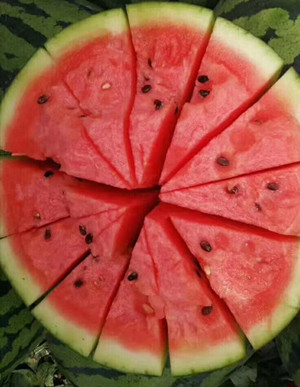 5.美都-西瓜苗品种:个头比8424略大,果肉颜色更深,而多汁,果皮较8424略硬,更耐运输耐裂