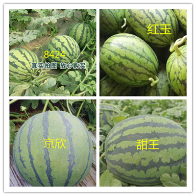 1.8424西瓜嫁接苗品种:早熟西瓜,果实圆形,瓜重8-14斤,亩产3000-4000公斤左右,开花至果实成熟28至45天左右,生长势中等,座果性好。绿皮上覆墨绿窄条带,外形美观,红瓤,质脆口感佳,中心含糖11-14度,耐贮运。合理密植,亩载苗数600-800株。适度灌溉。