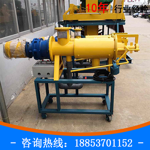 如果抽入的粪便水过多也会经溢液管排到原粪池中也起到了搅拌的作用,经螺旋挤压过滤分离出的废水可直接派送至沉淀池等。为了掌握出料的速度与含水量,可以调节主机下方的配重块,以达到满意适当的牛粪含水率。