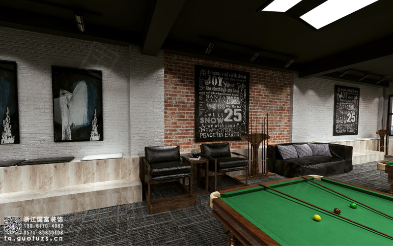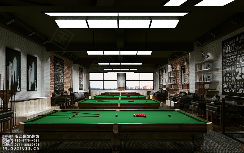 台球室装修当然要突出球房的特点,使消费者产生一种和谐美的心理,台球室装修主要分为外与内装修,特别台球室内装修更为重要。外装修主要能吸引消费者想进球房看看,台球室内装修主要是可以使消费者愿意长时间呆在球房里。