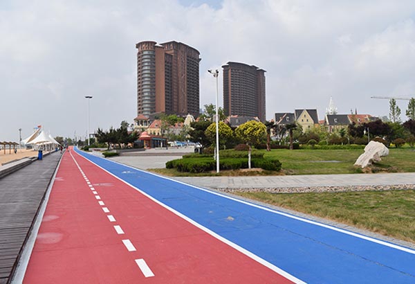 彩色路面可以做成各种满足人们需求的设计来,华通提供双重彩色路面材料(151.9233.3558刘经理)可供选择,有直接喷涂的也有,也有直接刮涂的。这篇主要向您介绍新型刮涂的MMA彩色防滑颗粒, 作用于跑道以及要求防滑的路面地段。