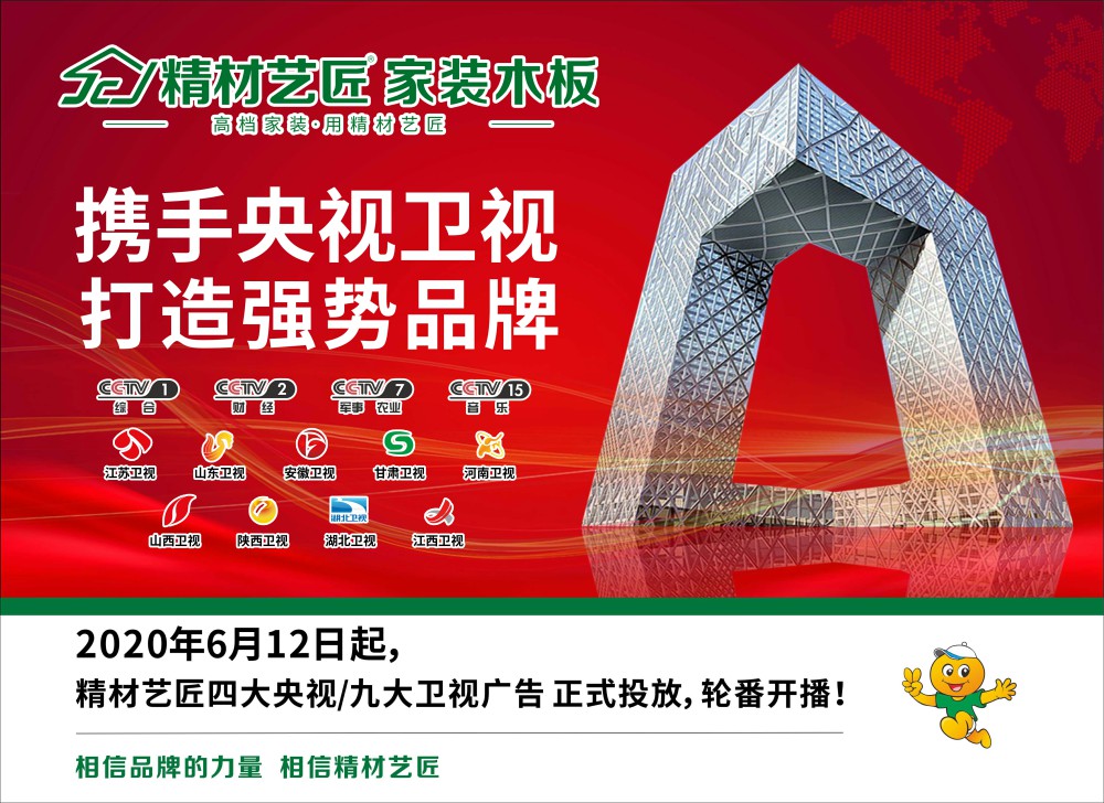 央视广告一直是企业品牌传播的黄金渠道,是很多企业传播品牌形象、提升品牌价值的首选平台,但由于中央台对所播出的广告有着极为严格的审核,很多企业在央视的严格审核下未能如愿在中央台播出。精材艺匠凭借其过硬的品质及齐全的资质在经过中央台的多重审核后顺利通过,并于6月12日正式开播,向全国观众展示精材艺匠专注家装木板的品牌诉求。