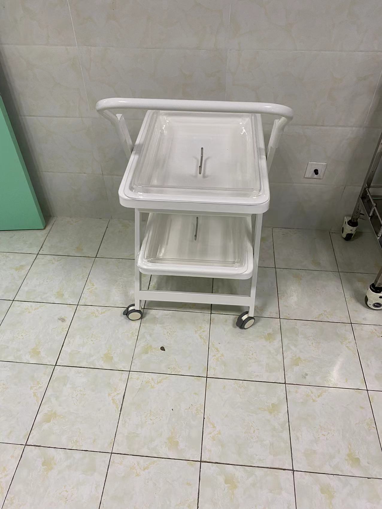小推车二层、三层独立式设计,周转盘材料由高分子复合材料独立开模制成,车体由钢体喷塑而成,具有耐腐蚀、不沾水、车行顺畅、取放方便等优点。盘内内镜存放导航隔条使污染部分分离。多层设计使客户在使用过程中可将清洁和污染的内镜分层标明后置放,可达到高效周转,避免交叉感染等功效。