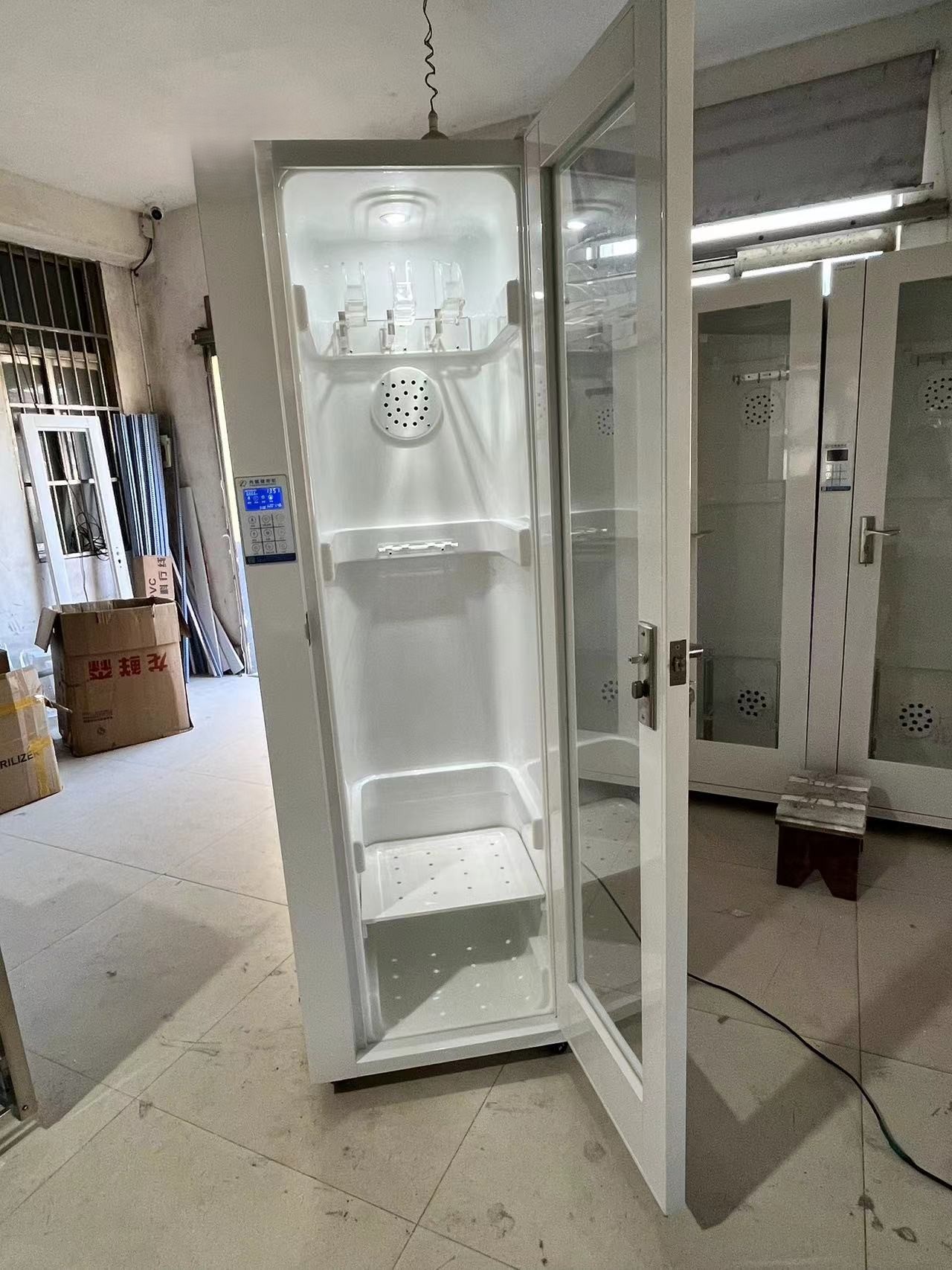 微电脑数显储存柜产品介绍A:数显储存柜分为单门储存柜TZR-SX-I和双门储存柜TZR-SX-II,硬镜储存柜TZR-SXY-I;(型号命名的含义TZR为泰之润品牌,SX为数显简称,I为单门,II为双门,Y为硬镜简称)B:软镜储存柜规格参数:单门储存柜规格为630*535*2080mm(长*宽*高);双门储存柜规格为1150*535*2080mm(长*宽*高),外部采用多工艺处理的钢塑材料,内胆采用优质高分子材料,独立的开模整体吸塑成型,无缝隙,不藏污垢;易清洗、表面细菌残留低,使用方便、安全、快捷,对内镜无磨损。外壳与内胆融为一体,柜内空间密闭效果优异,外观简洁实用,美观大方。软镜柜内部设有上中下三层内镜悬挂系统,全方位的定位内镜,防止相互碰撞。内设智能化自动控制紫外线,循环风的洗消程序,洗消工作自动累时,另有照明、通风、循环干燥、温度湿度显示等功能。单门可储存4-6条内镜,双门可储存6-12条内镜。C:硬镜储存柜规格参数:规格为:785*575*1800mm(长*宽*高)外部采用多工艺处理的钢塑材料,与软镜的不同是硬镜柜没有高分子内胆。