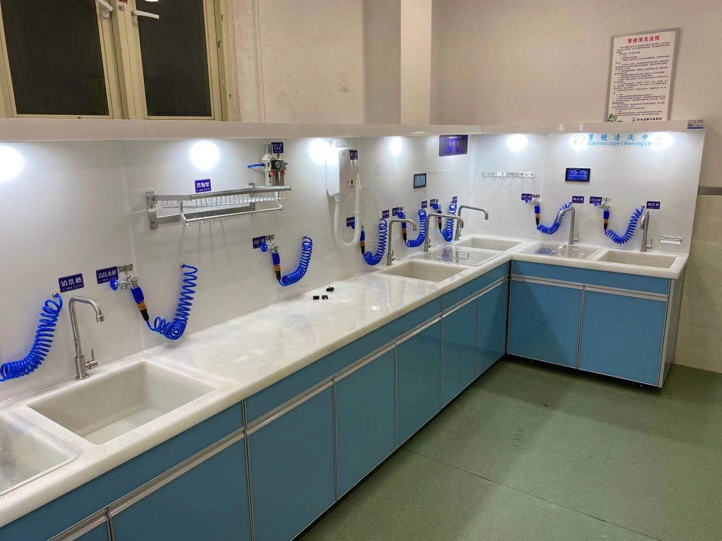 内窥镜清洗工作站是我公司根据卫生部《内镜清洗技术操作规范(2016年版)》的要求,结合国外先进技术及工艺,产品采用人性化及标准化设计、选材精良考究、配置灵活性强、自动化程度高、操作简洁方便、使用安全可靠、性价比高、清洗效果显著,广泛适合国内不同规模医疗机构开展内镜及其它器械清洗工作,是一种为内镜诊疗工作中对内镜清洗的设备。它由台面/清洗槽,柜体/功能背板,豪华内镜干燥保养台,自动灌流器,空压机,高压水枪,专用水龙头,内镜吹干机,灌流器自动接头,水源中心控制系统,中心电源控制系统,中心气体处理器,过滤水装置,专用方槽盖,内镜侧漏系统等,可选配追溯系统,超声波清洗机,纯水机,内镜转运车等。