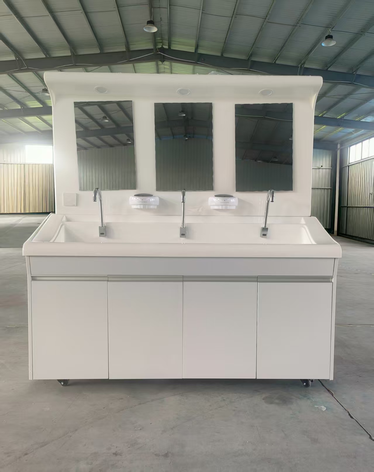 常用尺寸有单位洗手池、800*650*1800MM,二人位洗手池1500*650*1800MM,三人位洗手池 1800*650*1800MM 低背板1300MM