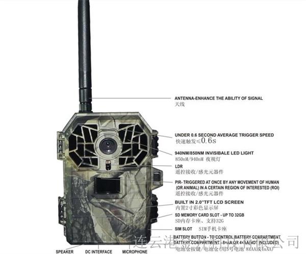 无线远程传输功能:带有图片无线传输功能,可自动将即时拍到的照片通过MMS发给任意4个手机号或4个电子信箱。自动支持中国移动联通3G,4G手机卡等