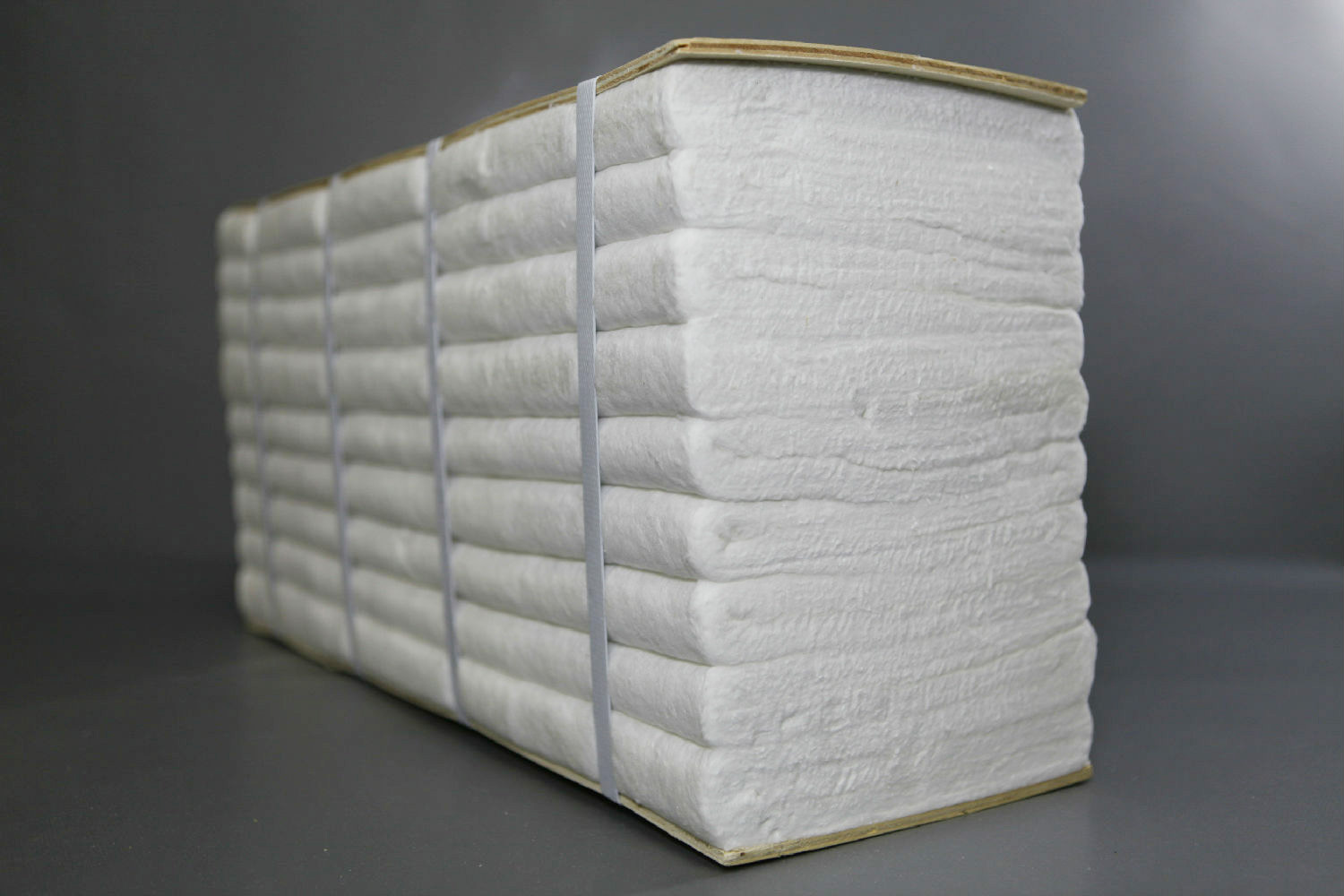 陶瓷纤维模块是用对应材质的陶瓷纤维毯按纤维组件结构、尺寸,由专用机械设备加工而成。其保持一定比例的压缩量,以保证陶瓷纤维组件壁衬砌筑完毕后,陶瓷纤维组件在不同方向的膨胀,使陶瓷纤维组件之间相互挤成一个无缝隙的整体,陶瓷纤维组件通过各种形式的锚固件直接固定于工业窑炉炉壳上。