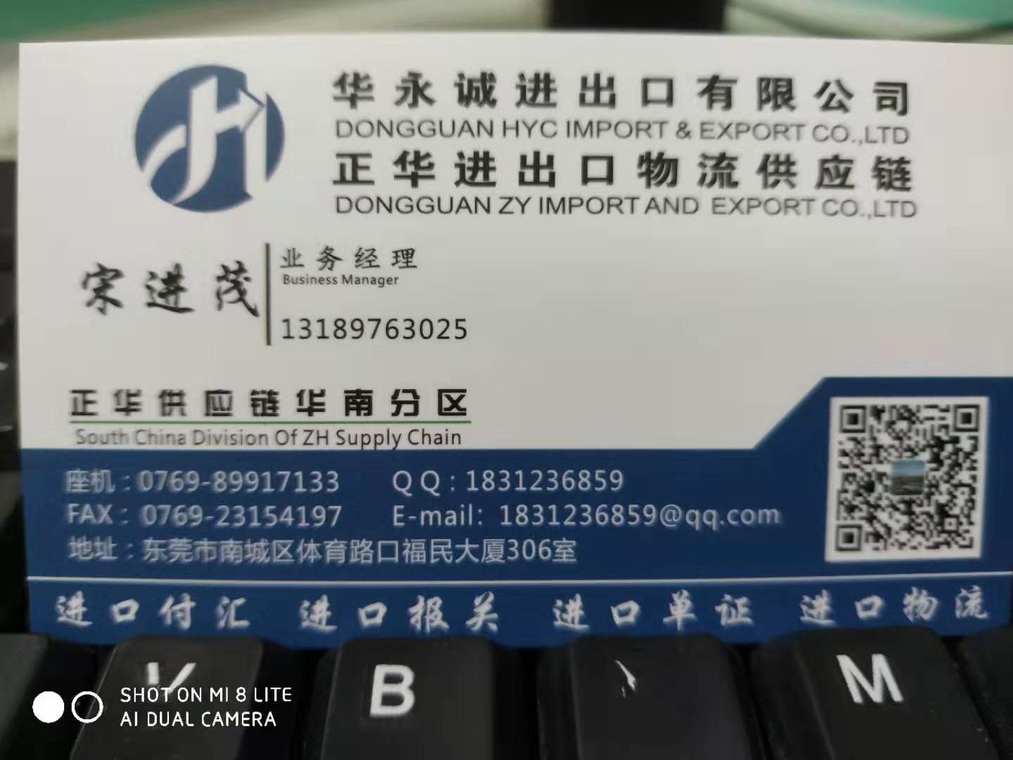 华永诚宋先生--------------------------------一对一式进口清关服务--------------------------------