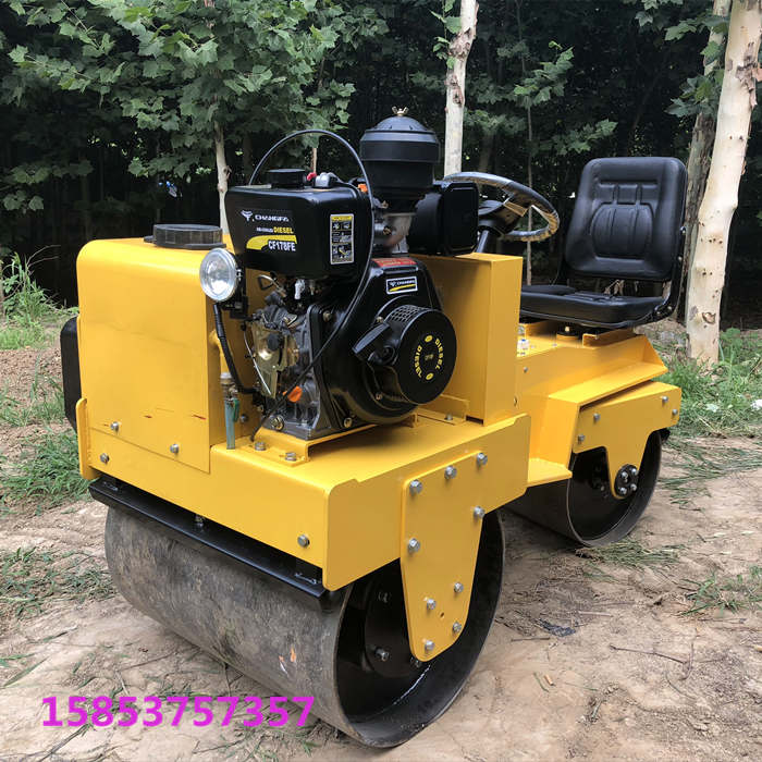 浩鸿生产厂家直销的双轮压路机,产品型号HH-850,前轮轮宽70cm 轮径580cm后轮轮宽60cm轮径430cm,发动机型号常发CF178 6,马力燃油箱6升,液压油5升,水箱15升,爬坡力可达30度,行走速度前进、后退0-5kmh,激振力3吨,激振频率可达到70Hz,自重700公斤,长宽高1900×1100×1300mm。