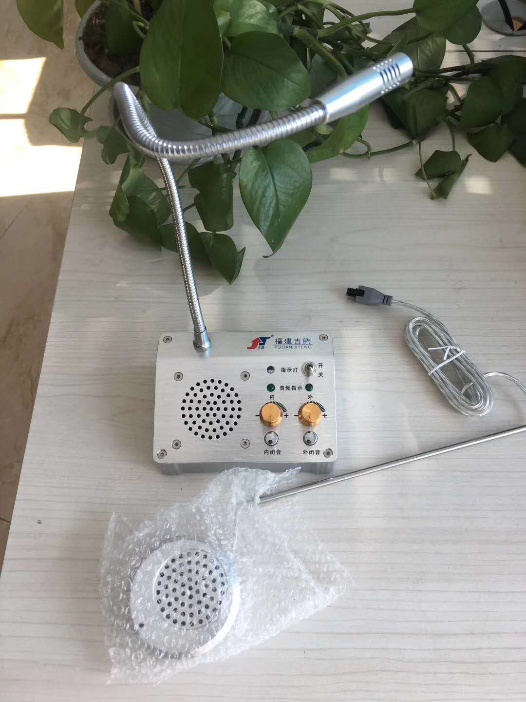 2、主机表面采用铝合金壳体,高品质扬声器,自带超长金属软管话筒(40cm),更方便与分机实现自由双向对讲。
