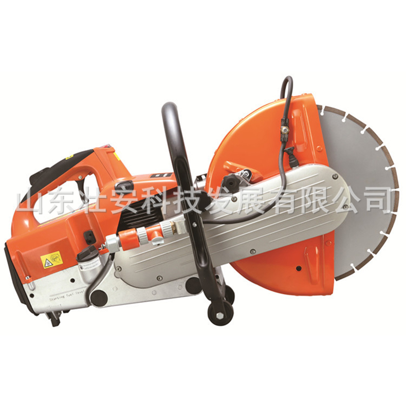 EHS350C型消防汽油无齿锯是我公司推出的又一破拆利器,消防破拆救援中必备的工具,采用两冲程汽油机作为动力,可驱动双网树脂砂轮片与金刚石锯片,切割效率快,救援时间快。主要用于消防、公安、建筑、工矿、公路、铁路、急救、破拆和救援工作,使用双网树脂砂轮片可切割钢管、铁管、钢筋、钢板等金属类材质,使用金刚石锯片可切割切割混凝土、岩石类材质。是救援工作的理想工具。