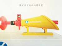 煤矿井下自动隔爆装置采用锚杆固定的方式固定在巷道顶板上。当井下发生爆炸时形成空气冲击波和火焰,这个阶段冲击的传播速度远远大于火焰的传播速度。当冲击波到达冲接收板,机械脉冲通过锚杆传到锁紧装置并且在12ms内引发灭火粉的喷发。只用120ms的时间在巷道中形成了浓度为110g/m3、长度超过30m的可靠的灭火粉雾状区域。并无盲区布满整个保护区域,此雾状区域阻碍并扑灭火焰锋面,能迅速使爆炸在巷道中的传播过程停止。本装备可用于有瓦斯或煤尘危险的矿井,主要隔绝或阻止爆炸传播,防止二次爆炸造成更大伤害,有效可靠减少爆炸损失,降低人员伤亡。