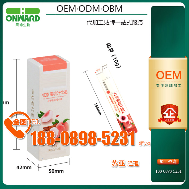 韩国红参水蜜桃浓缩液条加工ODM贴牌生产企业热线:188-0898-5231 苏亚 经理 QQ:2930913261